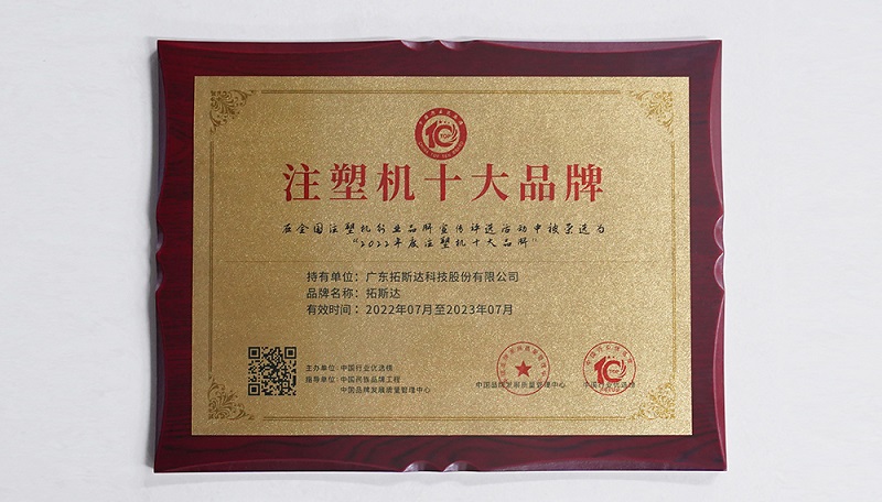 近日,拓斯达成功入选2022年度“注塑机十大品牌”。该评选活动由中国民族品牌工程联合行业优选榜、品牌强国示范工程、品牌大数据中心共同举办,入选企业均为注塑机品牌典型代表。