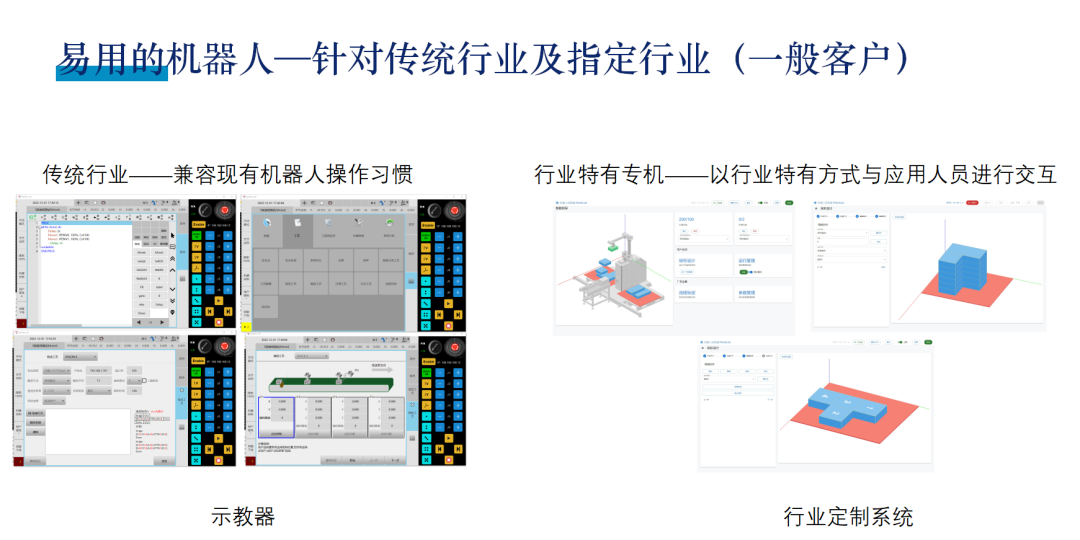 针对传统行业,兼容现有机器人操作习惯的,以示教器的形式实现控制;