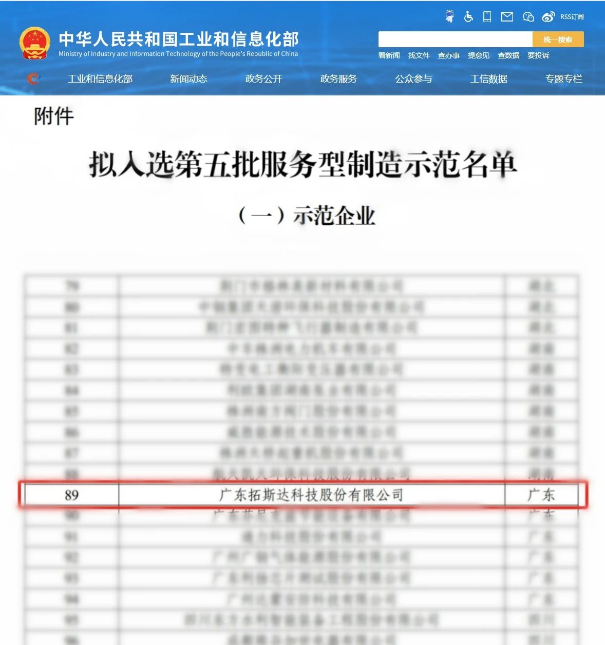 日前,工业和信息化部公示了第五批服务型制造示范名单,拓斯达入选工信部第五批服务型制造示范企业,感谢业界对拓斯达的技术研发能力和品质服务的信任和肯定。