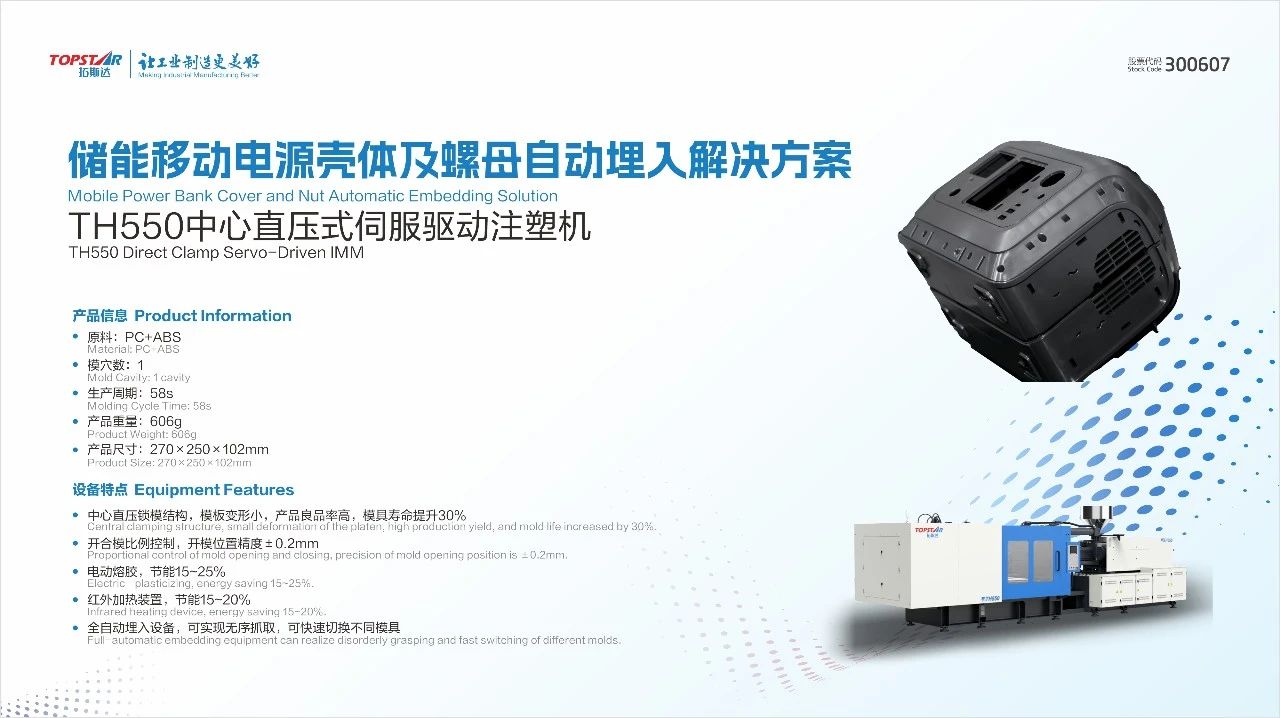 基于行业对智能化、绿色化、低碳化、数字化、精密化的升级需求,本次拓斯达三大核心智能装备注塑机、五轴联动数控机床、工业机器人齐齐亮相,以【MIM金属粉末注塑行业解决方案】、【厚壁化妆品包装行业解决方案】、【储能移动电源壳体及螺母自动埋入解决方案】、【注塑模具五轴加工中心解决方案】为展示核心。覆盖从原料到模具、再到智能设备及工艺应用的整个链条,有效帮助客户整合金属行业和注塑行业的各制造环节。