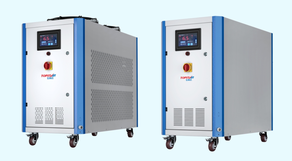 拓斯达的冰水机分为风冷式冰水机和水冷式冰水机,具备先进的制冷回路设计,水温5℃-35℃,压缩机功率5HP-50HP,冷却更迅速,广泛应用于注塑、吹塑、挤出等行业。