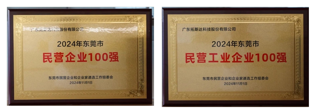 在当天揭晓的榜单中,拓斯达分别入选“2024年东莞民营企业百强”及“2024年东莞民营企业工业百强”榜单。